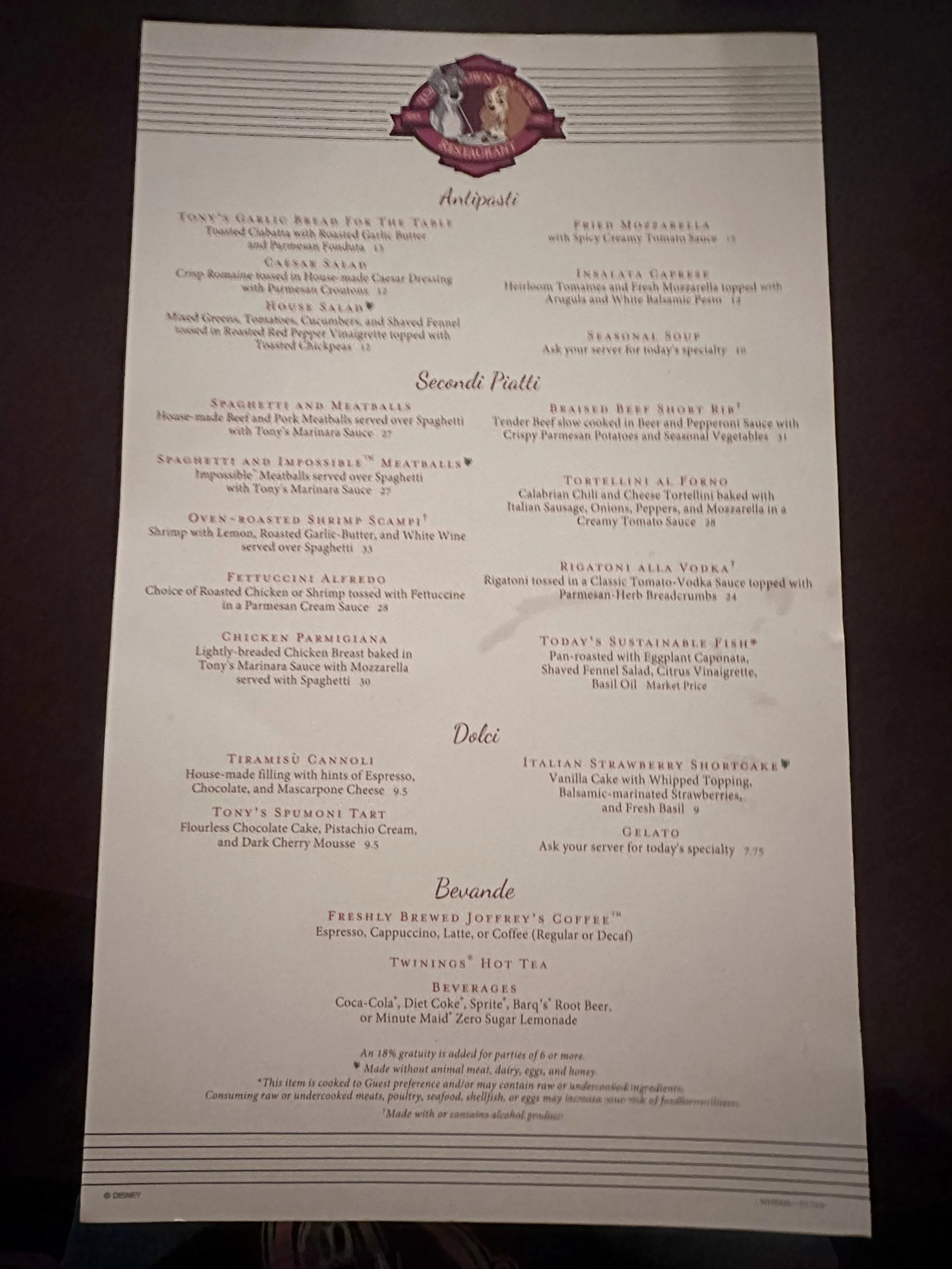 Step into the world of Lady and the Tramp and imagine having a meal at the Italian restaurant where the Tramp took Lady (you just get to eat inside). The decor and theme is a Lady and the Tramp lovers dream as the restaurant is full of original art from the movie and the premiere. Even the little brooches the waitress wear are themed!!