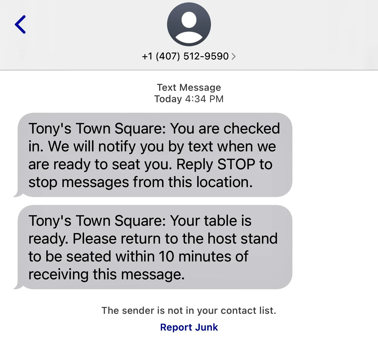About ten minutes before our reservation time, we utilized the app to check in (you can check in at the host stand as well but we just checked in as we were walking up). Once we got to the restaurant we checked in again with the hostess just to make sure they knew we were here and we received a text confirming we were checked in and another text when our table was ready.
