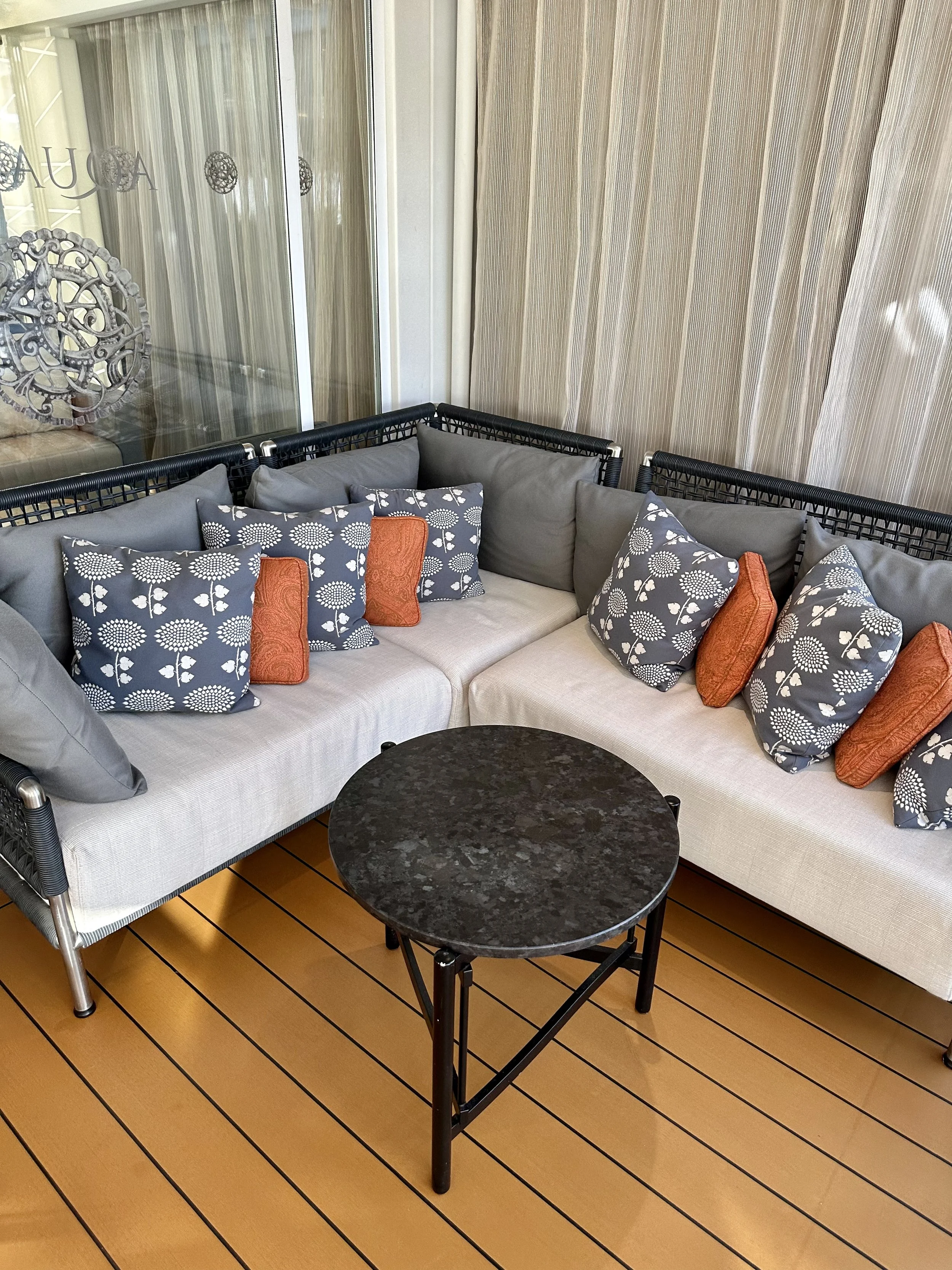 This is in the Aquavit Terrace. You could have a continental breakfast out here or dinner. It was also a lovely place to lounge and still enjoy some sunlight.