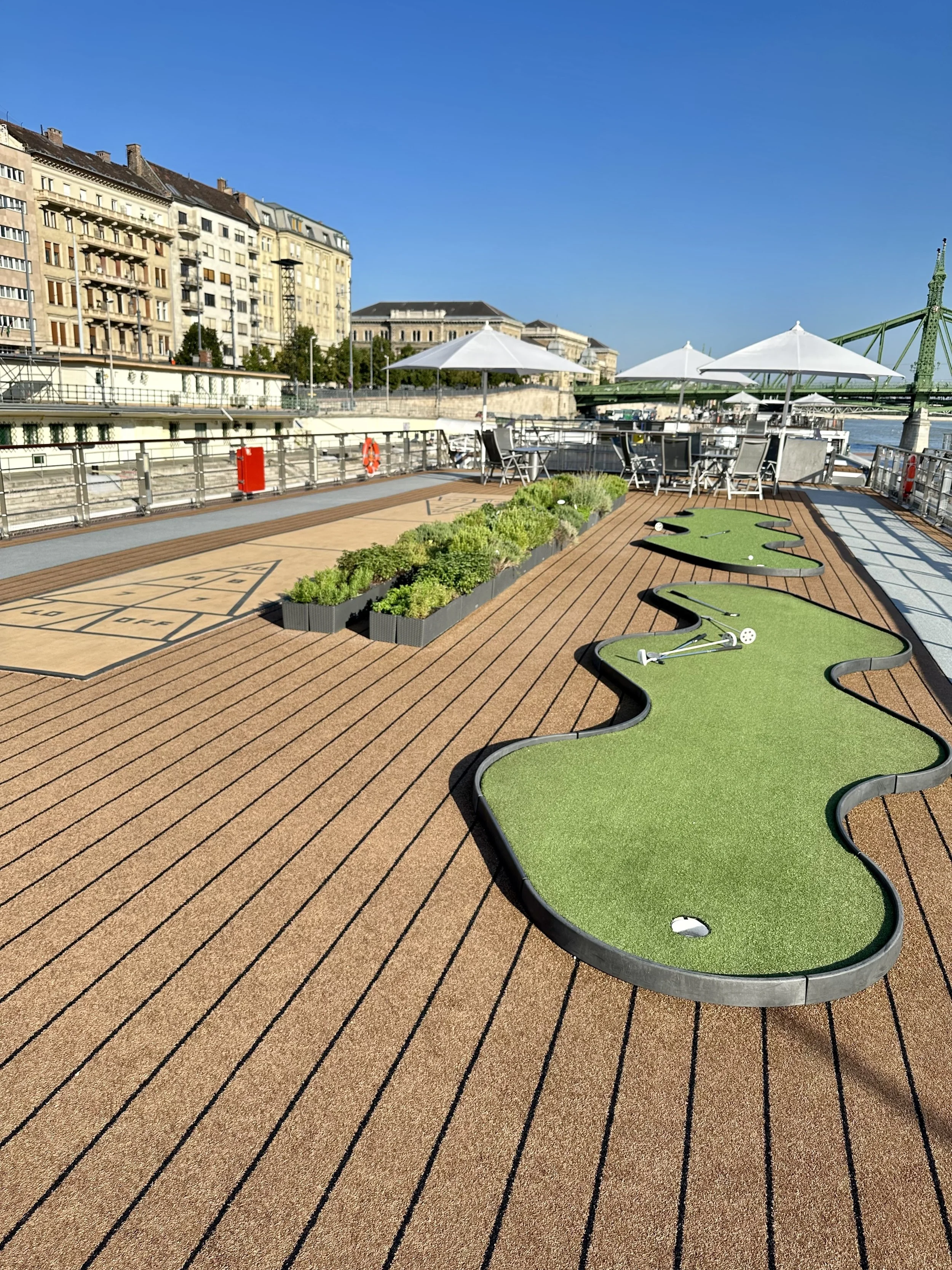 Shuffleboard, The Herb Garden, and putting greens all sat inside the walking path. This was located towards the back of the ship closest to the smoking section.