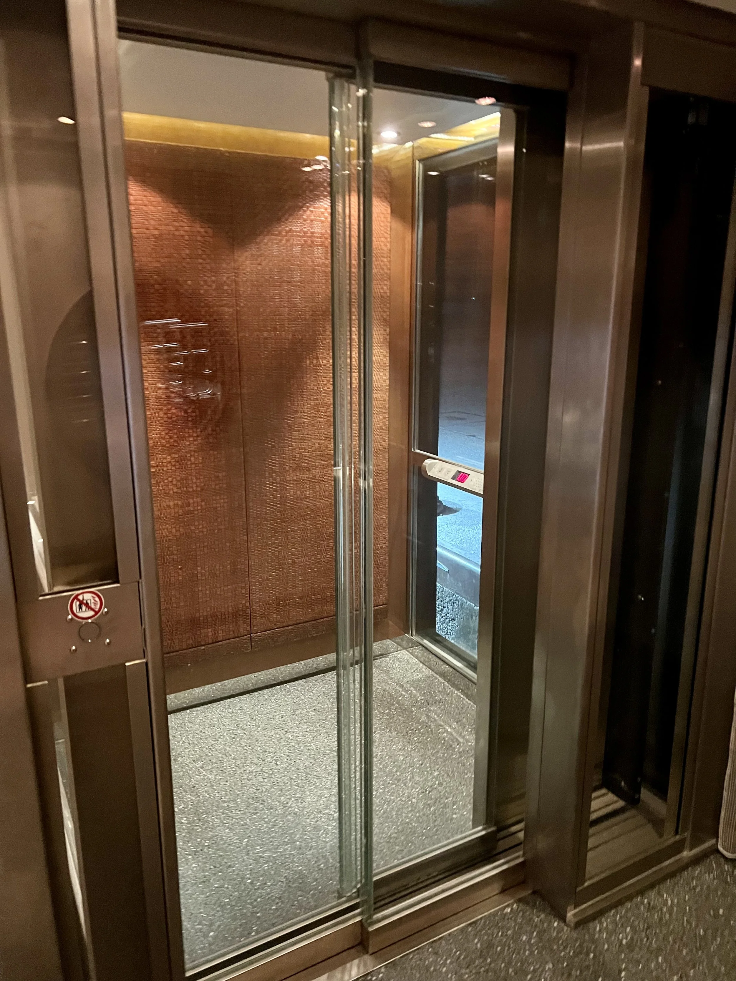 This is the only elevator that is accessible to guests. It only services the Upper and Middle Deck and is just outside the Lounge.