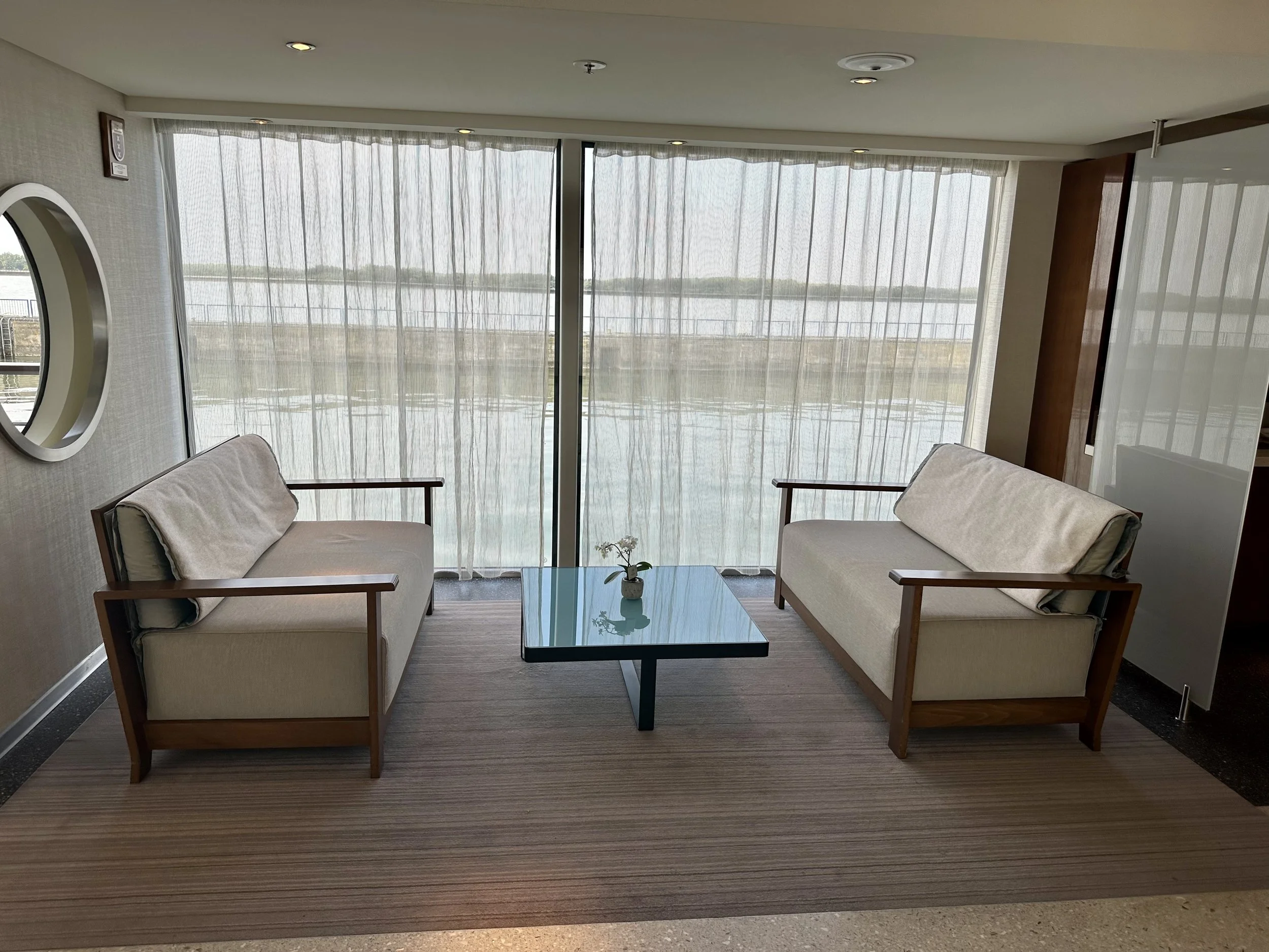 Some of the seating in the lounge. You can see the Aquavit Terrace in the back left and the stairs up to the Sun Deck. Seating filled up quick in the evenings for the port talks and especially when they had live entertainment on the ship in the evenings so make sure you get there early!