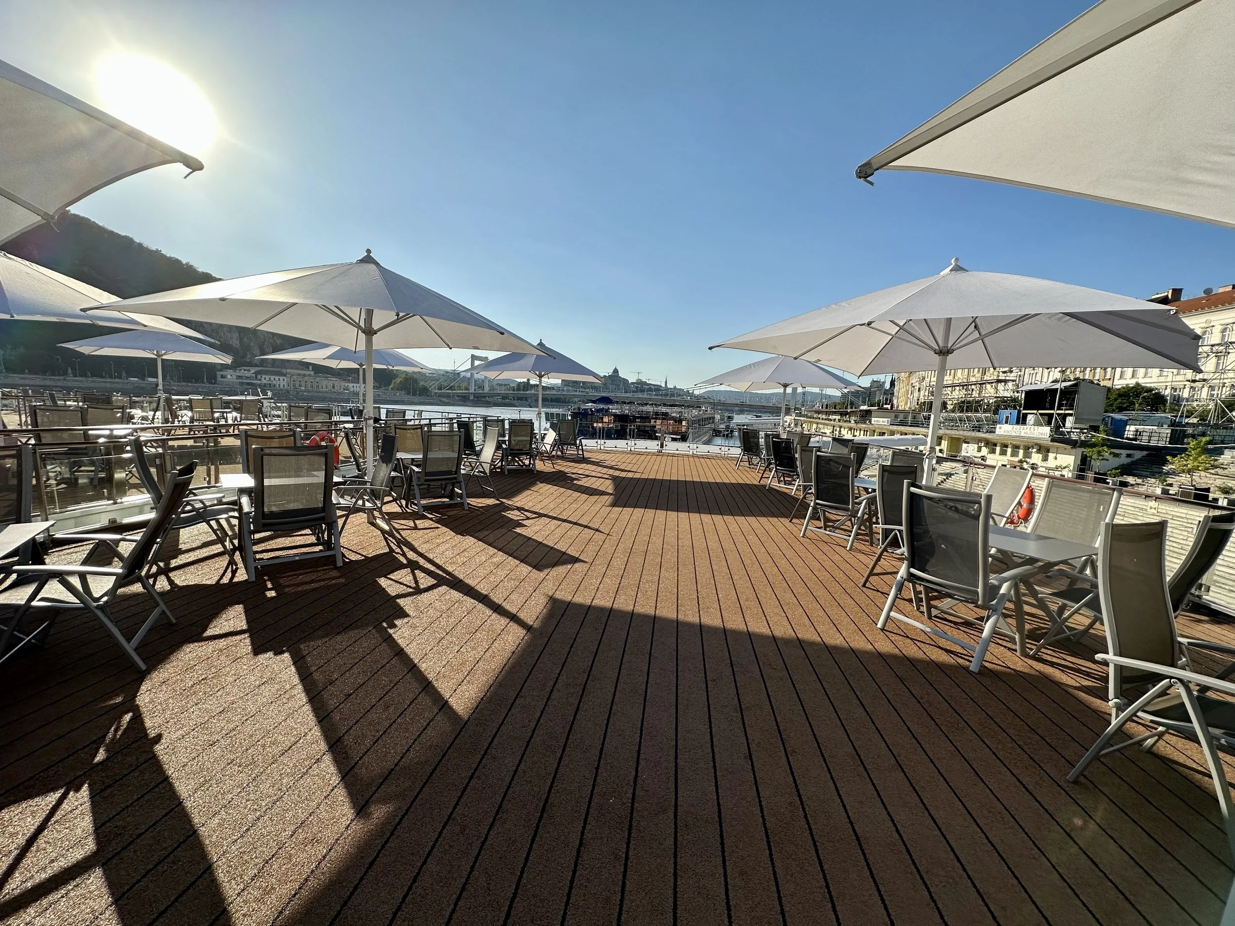 Our favorite hangout place on the entire ship was the sun deck. It is completely open so that you can literally watch the world go by while enjoying a breeze on the calm waters of the Danube. Whether docked or at sail, this was a perfect place to chat, play some cards, read, or just take in the sights.